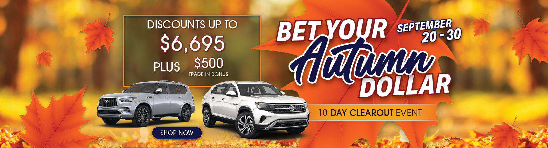 Offer cannot be combined with any other promotion. Not transferable to prior purchases. See your Dealer for details. Offers valid from September 20-30th, 2023.